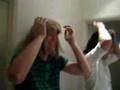 Description: Videoing Jason and Paul fixing their wigs for the party |